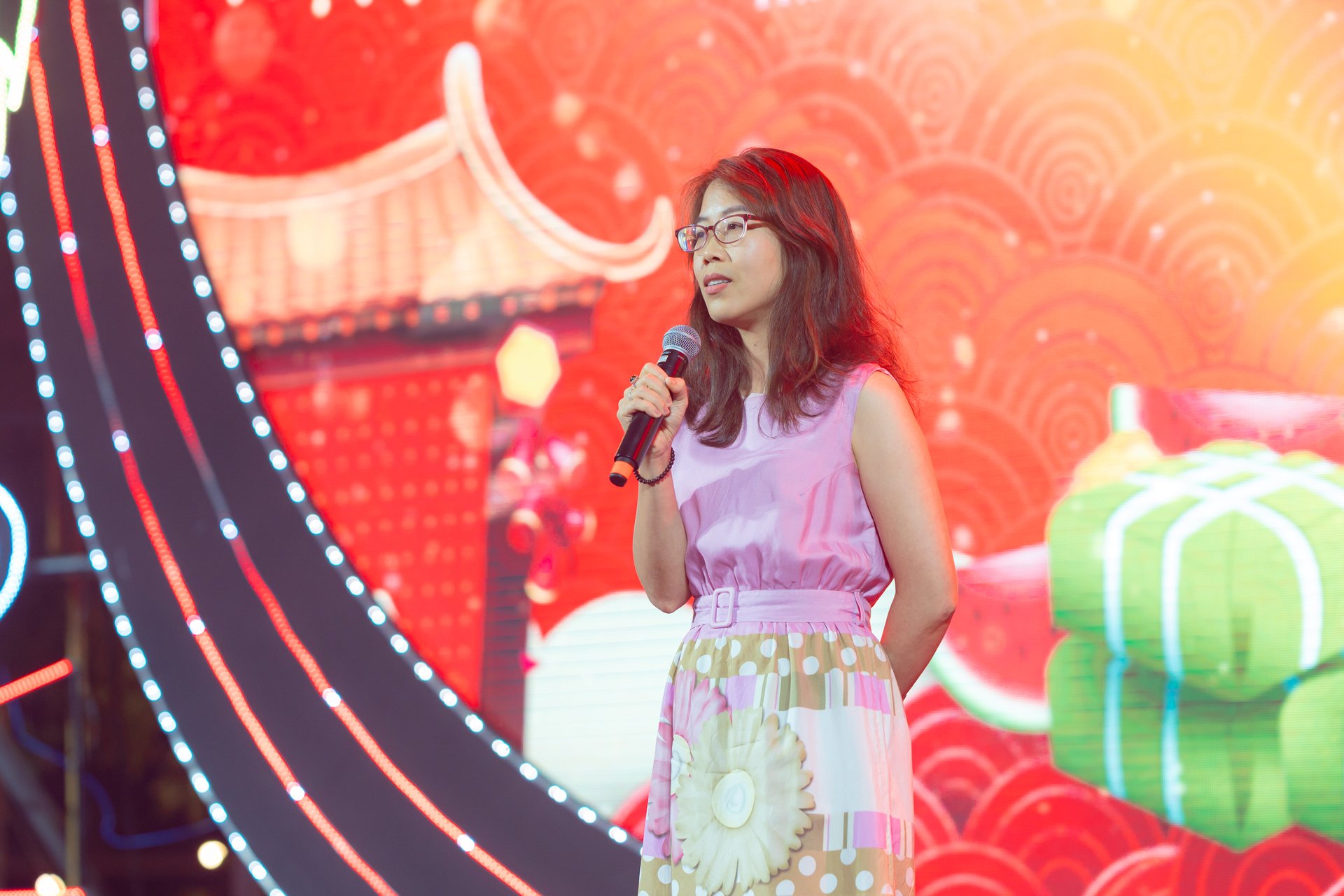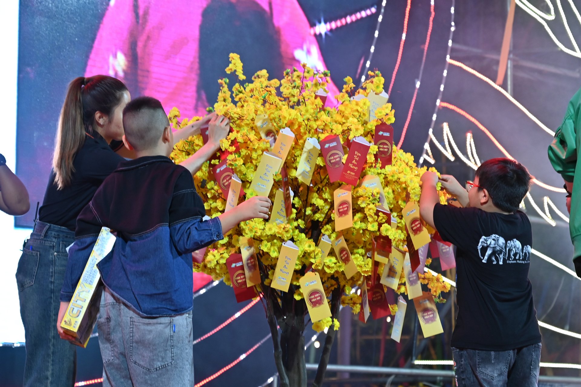 Màn trình điểu Led Matrix kết hợp pháo bông đẹp mắt tại chương trình.