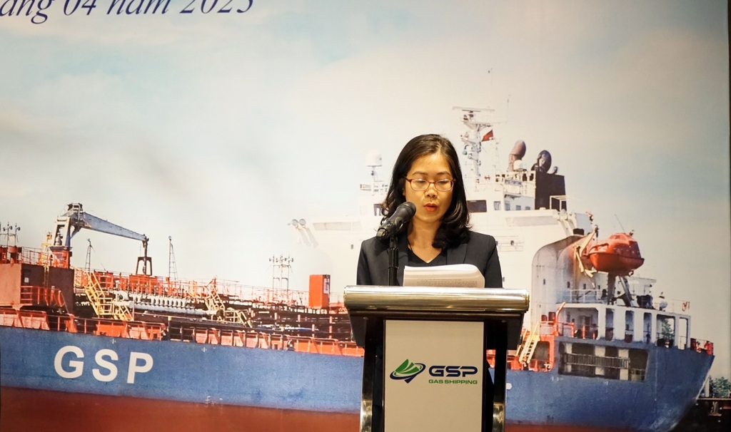 Bà Vũ Thị Phương Nga - Chủ tịch HĐQT Gas Shipping trình bày các báo cáo, tờ trình